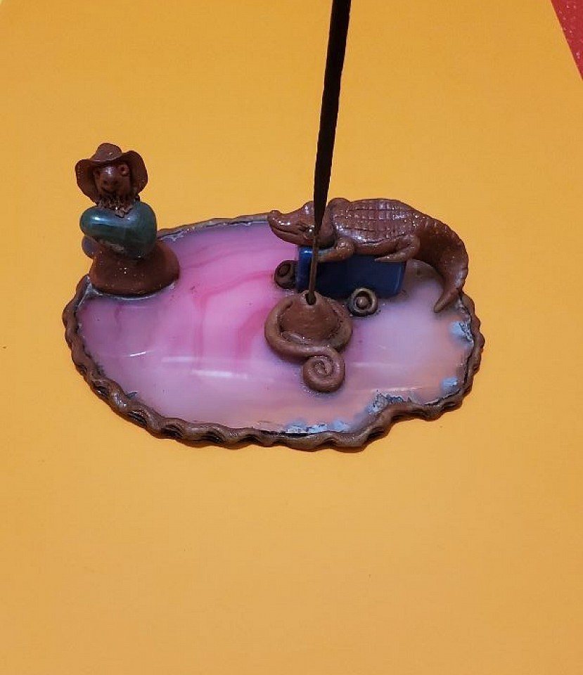 Le porte-encens en agate se distingue par sa beauté naturelle et son énergie apaisante. Avec des dimensions de 12 x 9 cm, il est idéal pour la relaxation et est proposé à 15,00 €.