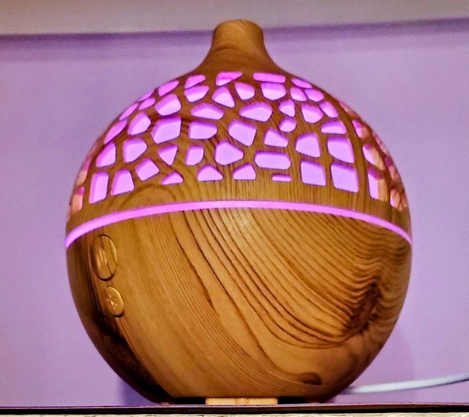 Diffuseur LED au dôme ciselé pour une ambiance zen et parfumée.